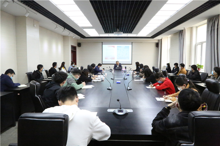 4月19日上午,副校长树学峰在明向校区数学学院602会议室为数学学院师生讲授“返校第一课”。院党委书记贺婧、院长张建文、副院长柴玉珍、杨卫华、团委书记冯妍及全体辅导员一同走进课堂。