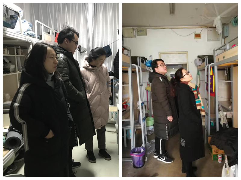在迎西校区学生公寓1、2、3、5、7、15栋,全体人员分两组针对宿舍卫生、用电安全及门窗防护等方面开展核查,认真仔细检查每间宿舍是否切断电源、是否关好门窗,对宿舍中发现的各项安全隐患都做了及时处理和详细登记。检查过程中,大家与未离校同学亲切交谈,叮嘱离校前收拾好自己的被褥用品,带走贵重物品,清扫宿舍卫生,关闭电源,锁好门窗,在回家途中提高安全意识,注意交通、人身、财产、网络安全。