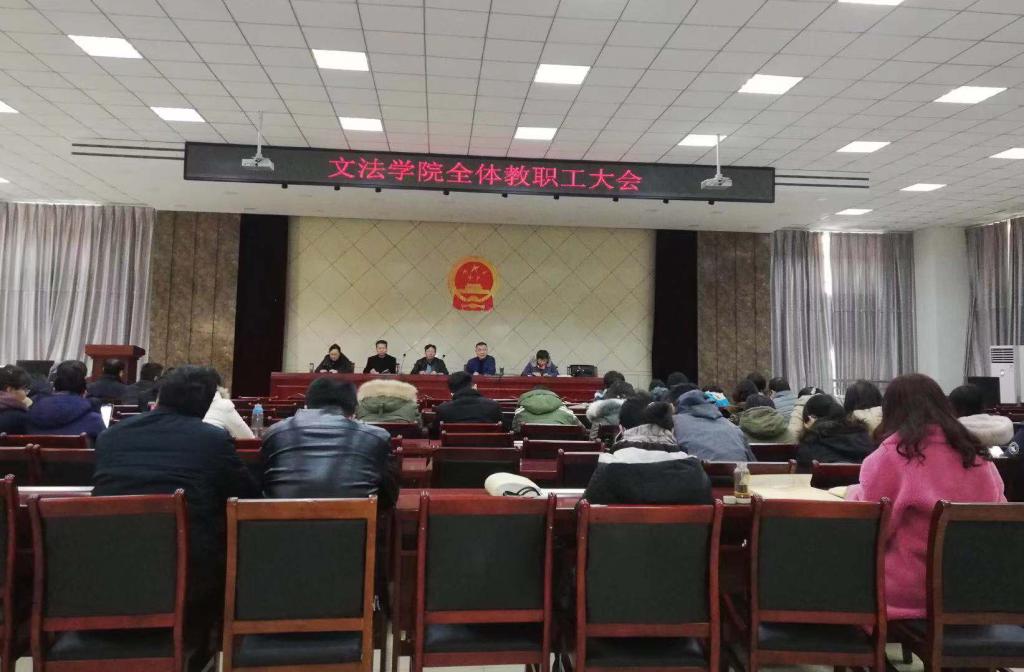 为进一步加强师德师风建设,提高教师队伍素质,1月13日上午,文法学院在学院二层模拟法庭召开全体教职工大会,院党委副书记申晓东主持会议。