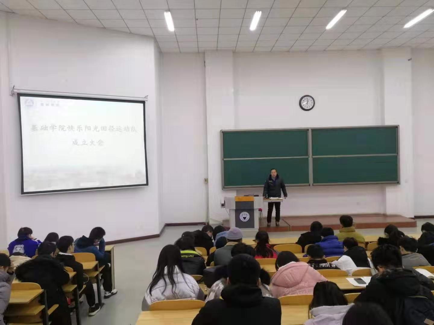 为提升学生的身体素质,提高学院的体育竞技水平,基础学院组建了快乐阳光田径运动队并于近日举办了成立大会,大会特聘体育学院副院长宋志伟作为指导老师出席并发言,此外,应邀卓远、升硕两集团代表出席,基础学院院长宋燕出席并讲话,部分辅导员和160名优秀运动员代表参会。会议由基础学院党总支副书记武佐君主持。
