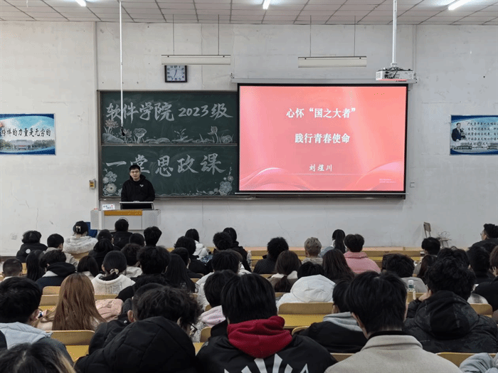 软件2023级集中开展了以“心怀‘国之大者’,践行青春使命”为主题的一堂思政课。软件2302熊世瑜说:“通过一堂思政课,我更深入地了解到何为‘国之大者’,在接下来的学习生活中,我将加倍努力,立志成为一名立大志、明大德、成大才、担大任的新时代青年!”