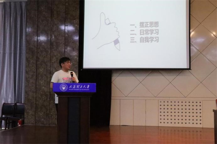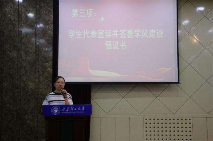 学生代表桂依然宣读“一站式”学生社区学风建设倡议书,各班代表共同签署。随后举行“知行文法”第一期优秀学生奖学金获得者经验分享会,来自不同学生社区的牛泽旭、闫晓菲和吴晨曦三位同学结合自己专业特色,从学习方法、学习态度、学生工作、学术竞赛等方面分享自己的看法,为同学提供宝贵意见,充分发挥了优秀学子的引领力量。
