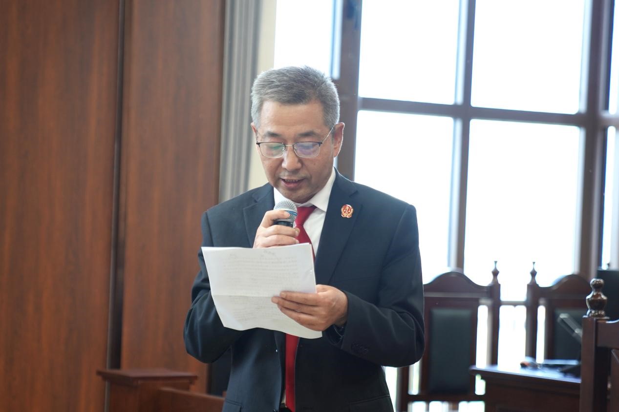 庭审前,鹿霞飞介绍了本次庭审活动的意义。他指出,校园庭审活动创新了普法形式,让学生“零距离”“全景式”感受司法的权威性和法律的严肃性,推动帮助学生尊法、学法、知法、守法、用法,强化法律思维、树立法治意识,学会运用法律武器保护自己,实现“庭审一案,教育一片”的良好效果。希望以这次活动为契机,进一步推动法学教育和司法实践深度融合,实现人民法院审判工作与高校教学科研工作“双向赋能”。