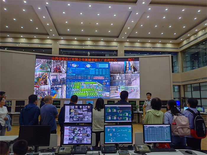 在山西信发化工有限公司,师生们在氯碱智能工厂监控中心进行了学习,乘坐大巴进行了绕厂观摩,参观了信发之家的安全教育室、党组织生活馆、党员活动室、党建展厅等。大家不仅了解了山西信发化工有限公司智能化工厂建设现状,更被公司“一个引领、双目标、六力聚能”的“162”发展模式深深折服。