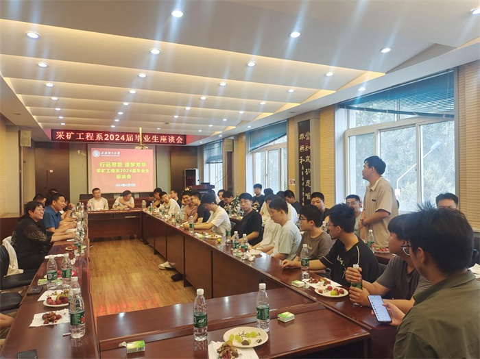赋青春以壮怀,腾鲲鹏于人海。6月4日至6日,矿业工程学院采矿工程、地下工程、地球科学与工程、测绘科学与技术、矿物加工工程、煤矿机电等6个系举办了2024届毕业生座谈会。此次活动旨在总结丰硕成果,畅谈光明未来,为学院的发展献计献策,同时进一步加深师生之间的浓厚情感。参加座谈会的有矿业工程学院党委书记巴大志、副书记高妙玲、副院长王开、各系主任、教师代表、以及辅导员与毕业生代表。