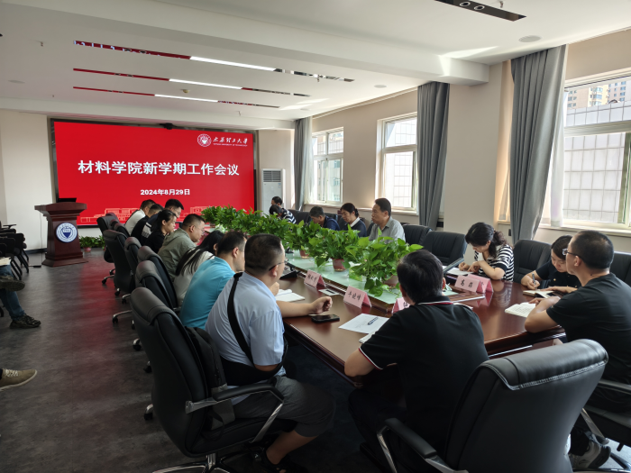 为进一步深入学习贯彻党的二十届三中全会精神,深化教育综合改革、推动材料学院各项事业高质量发展,8月29日,在迎西校区材料科学与工程学院8层会议室召开新学期工作会议,传达学校2024年秋季学期工作部署会精神,安排部署材料学院新学期重点工作任务。学院领导、系部中心正副主任、党支部书记、三办及团委负责人,各中心、研究院负责人参会,院长王晓敏主持会议。