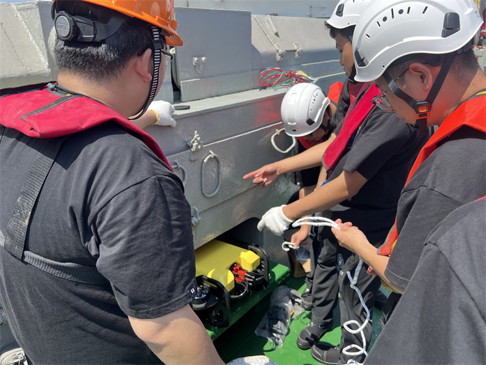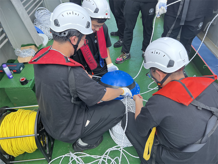 历时5天的海上教学活动中,浦京10名师生完成海洋技术相关实践课程。合计开展5个站位的海洋表层漂流浮标海上布放、观测以及回收试验,小型ROV多次水下操作以及影像数据获取。学生们在船上独立完成浮标结构检查、程序调试、通讯测试,以及小型ROV的水密检查、模拟动作、定位定向等操作。