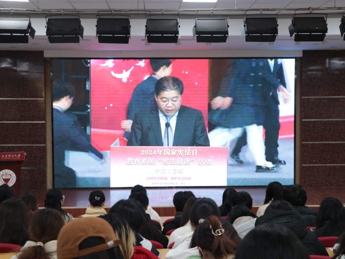 12月4日上午,组织学生在线参与第十一个国家宪法日教育系统“宪法晨读”活动,朗读中华人民共和国宪法的部分条文,集中观看第九届全国学生“学宪法 讲宪法”活动的优秀选手展演。与会师生深入理解宪法精神,感受宪法权威,纷纷表示要在日常生活中认真践行和维护宪法。