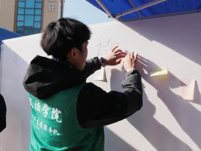 法学2302团支部召开了“宪法在心 法治同行”主题团日活动,通过分享宪法知识、讨论宪法在实际生活中的应用等方式,让同学们对宪法有了更直观和深入的了解。活动中,团员青年们共同观看宪法宣传视频,深化对宪法内核的理解;学院青萃法律服务中心推出了普法教育系列活动,以法条拼接诗、宪法知识竞赛、法律咨询服务等多元化的宣传教育载体,引导师生进一步深化宪法意识,积极弘扬宪法精神。