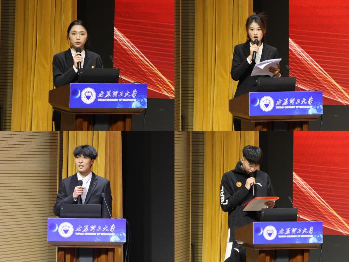 获得2024年优秀共青团员、优秀共青团干部、优秀社会实践队员、三好学生、优秀学生干部、先进班集体的代表上台领奖。2024年国家奖学金获得者、体育教育2104班张嘉欣同学、体育教育专业和运动训练专业2023级专业学习第一名获得者袁昊、郭轩萌同学以及高水平篮球队队长曹芷豪同学分别做代表发言,四位同学结合自己的大学学习生涯,分享了取得优异成绩的经验,并号召全体同学制定目标,做好生涯规划,潜心学习,积极参加实践锻炼,将体育精神融入到日常学习生活中去,用优异的成绩回报国家、社会和学校的培养。
