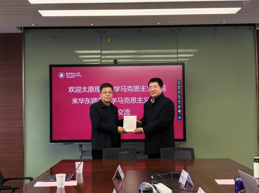 3月13日,马克思主义学院调研组与华东师范大学马克思主义学院副院长赵勇教授、全国高校思政课教师研修基地副主任王磊副教授、贾秀堂副教授等展开深入交流。双方就马克思主义理论学科建设、学位点申报、思政实践课程建设、师资队伍建设的有效机制、研究生培养模式与质量保障体系等议题展开讨论。双方一致同意通过跨学科协同、校际合作等方式推动马克思主义理论学科高质量发展,深化两院务实合作。