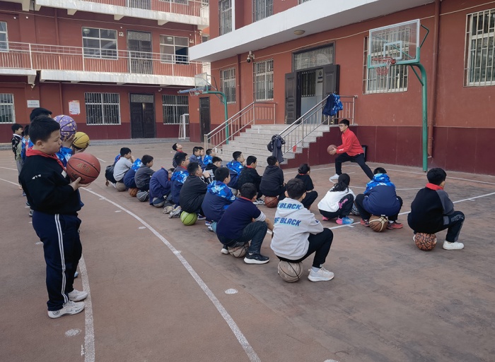 城关一小支教团队立足学校体育特色,创新组建篮球训练社团。基于青少年体能发展规律,开发了“五指贴标法运球矫正体系:通过手掌标识可视化教学,将复杂的运球手型分解为直观动作模块。通过系统培训帮助本校教师掌握篮球教学技能,从基础动作分解、训练方法设计到课程组织进行全方位指导
