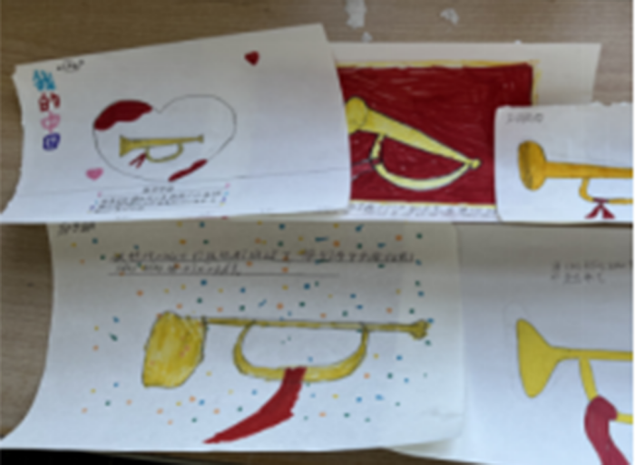 城关第二小学在夯实体育学科常规教学的同时,立足校本特色开发红色思政课程。针对学生课堂认知特点,创新推出"冲锋号精神传承"主题课程,采用模块化教学设计:通过历史纪录片影像解析、军用号角实物图谱观摩,多维度还原烽火岁月中冲锋号的战略价值,深化学生对军号庄严性与精神象征的认知。课程延伸设置“战地之声创意实践任务,要求学生在课后完成主题绘画《我心中的冲锋号》并附注致敬战士的感言,实现艺术创作与情感教育的跨学科融合,激发学生的爱国情怀与历史共情能力。