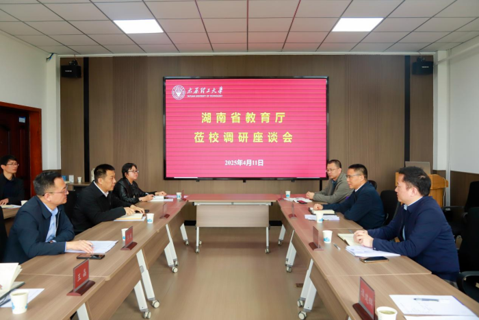 4月11日,湖南省委教育工委委员、湖南省教育厅副厅长孙传贵一行莅校调研本科招生工作及大学生创新创业工作。座谈会在迎西校区招生与就业工作部301会议室召开。校党委常委、副校长王志华,招生与就业工作部和创新创业学院负责人参加了座谈会。