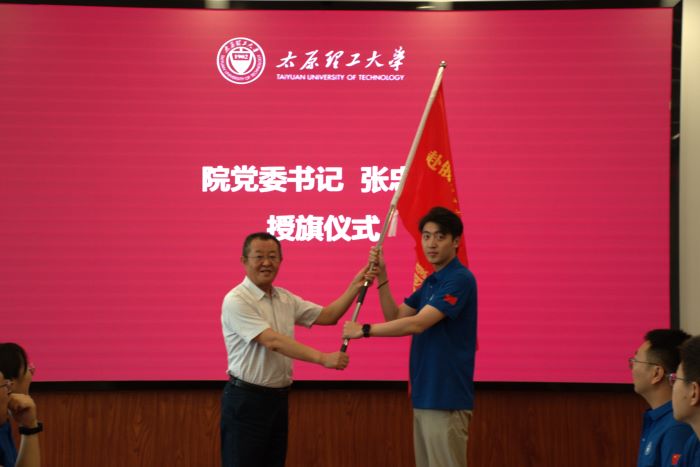 最后,张忠璞为赴俄罗斯圣彼得堡实习队伍授队旗,并合影留念。