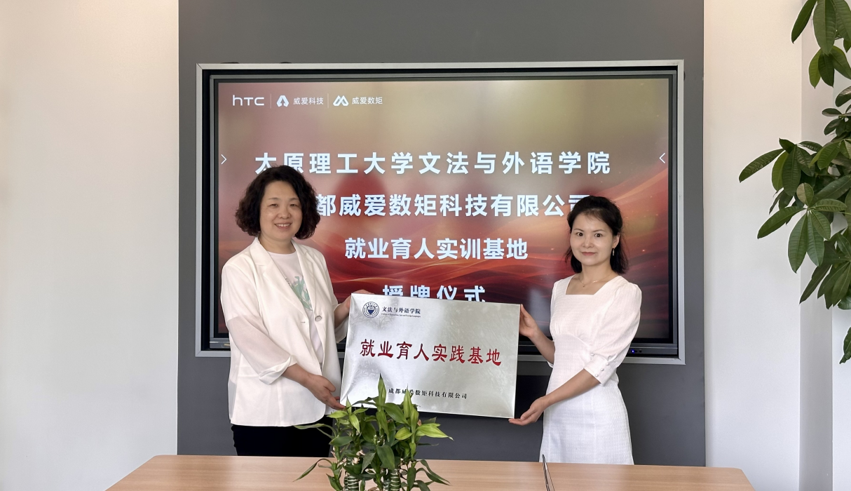 段荣娟介绍文法与外语学院专业设置、办学特色及未来教育教学发展思路,双方深入探讨了将VR/MR技术引入本科及研究生课堂教学的可行路径,明确提出加快构建数智化课程实训生态,为学生职业能力提升和教学革新奠定基础。此外,双方举行就业育人实训基地授牌仪式,标志着合作平台正式启动。