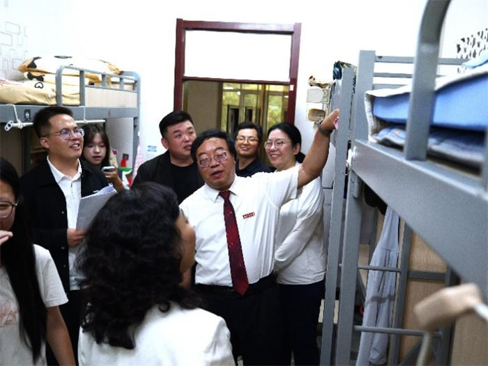 为深入了解新生入学适应情况,传递学院人文关怀,9月13日下午,软件学院领导班子带领新生辅导员深入学生宿舍,亲切慰问了刚刚入校的2025级新生。