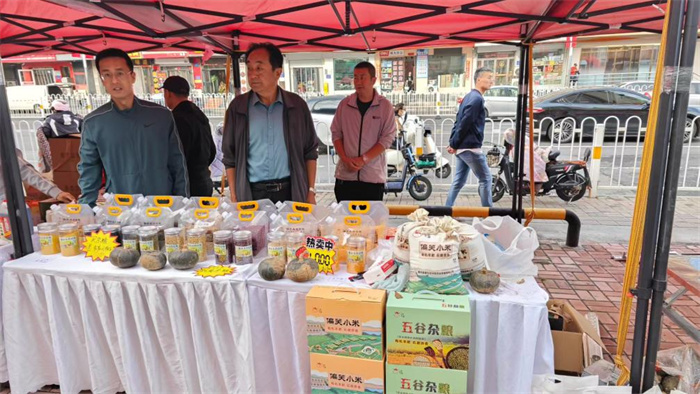 致敬耕耘者,礼赞丰收年。9月22日,太原市杏花岭区2025年中国农民丰收节系列活动隆重举行,偏关县楼沟乡迤西村携绿色有机农产品参展,驻村工作队现场推介杂粮等优质农产品,市民们纷纷驻足品鉴,现场气氛热烈。浦京驻村工作队队长李伟表示,偏关杂粮品牌的亮相不仅为市民带来了健康优质的食材选择,更构建起城乡互动的桥梁,希望以此为契机,带动大家更加关注农业、关心农民,推动地方特色农产品走出产区,走进市民。