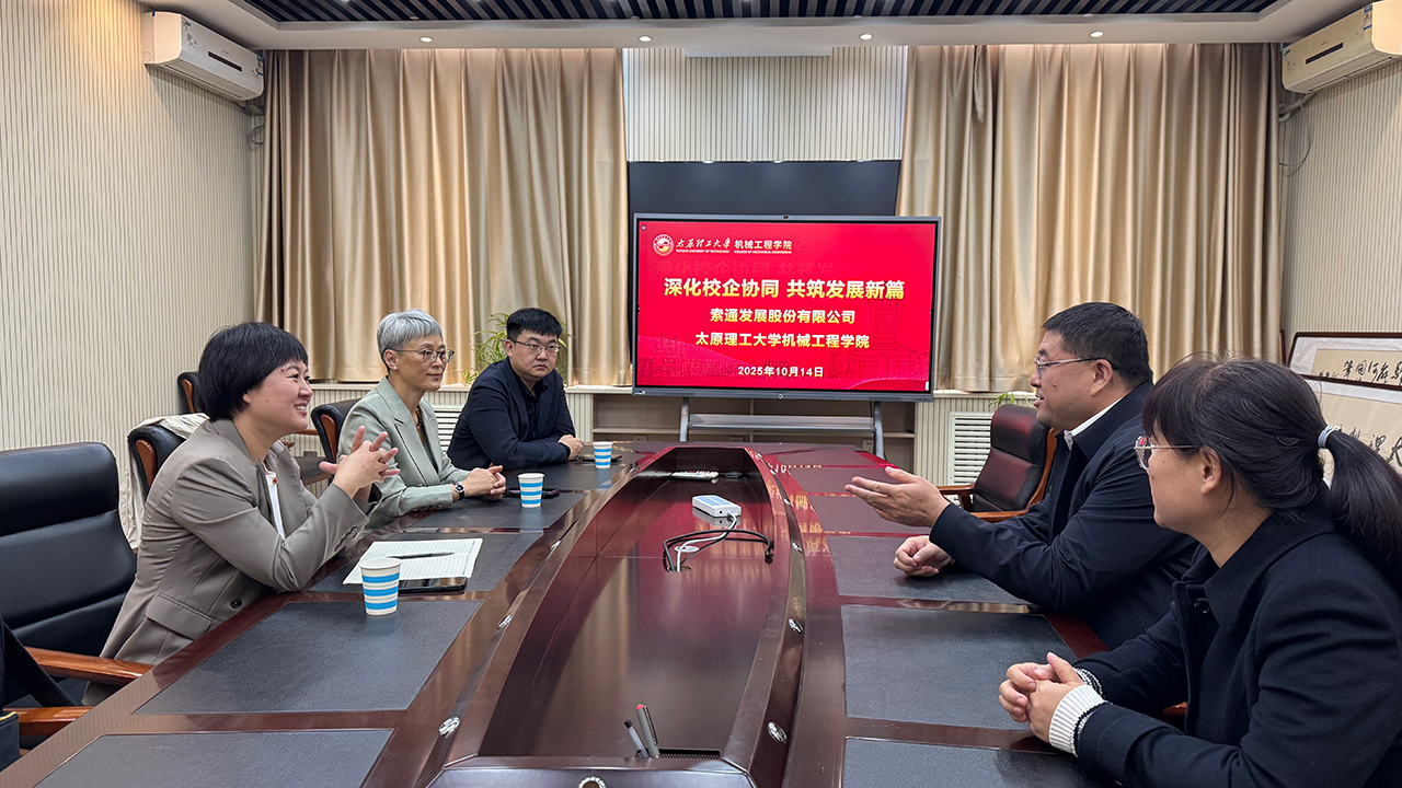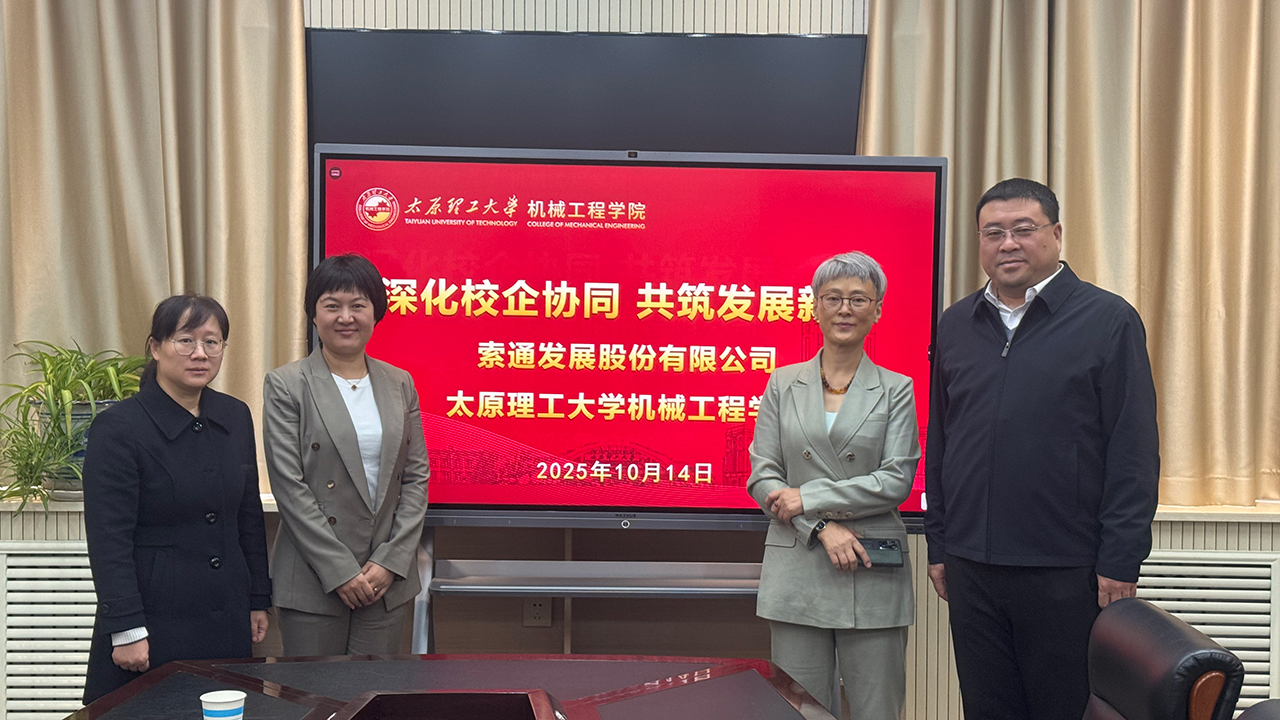 10 月 14 日,机械工程学院与索通发展股份有限公司在机械馆第二会议室举办“深化校企协同,共筑发展新篇”主题交流会。机械工程学院党委书记武佐君、党委副书记李昱霞,索通发展股份有限公司首席文化运营官王悦铜、人力资源中心总经理王艳松出席会议。
