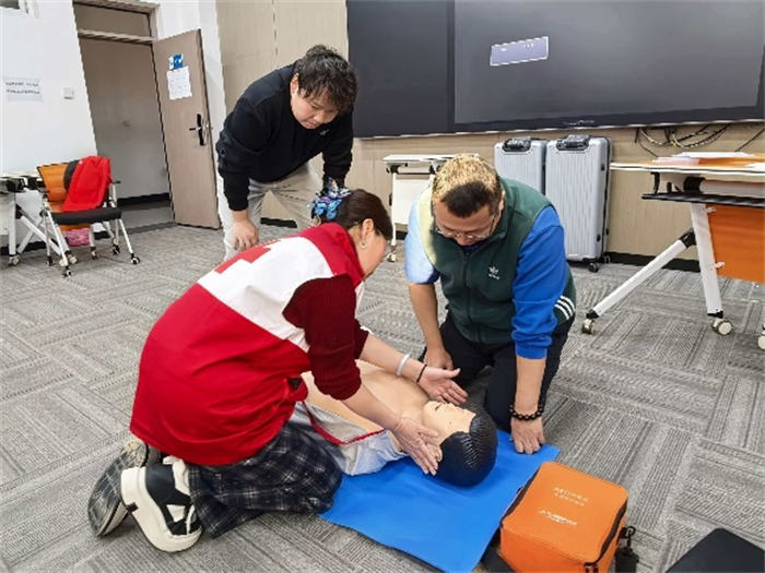 为普及应急救护知识,提升教职工应对突发事件和意外伤害的自救互救能力,进一步筑牢校园安全屏障,11月2日,体育与健康工程学院精心组织全院教师及行政人员,分校区参加了由山西省红十字会派遣专业讲师讲授的初级救护员培训。此次培训旨在通过系统化、规范化的教学与考核,打造一支具备基本应急救护技能的教职工队伍,为平安校园建设注入新的力量。培训活动分别在明向校区和虎峪校区同步进行,共计45名教职工积极参与。体育与健康工程学院院长张美珍也在虎峪校区与学院教师们一同认真参与了学习和实操,以实际行动彰显了对校园安全工作的深切关注。