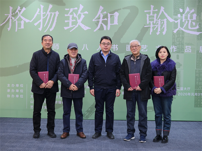 12月24日,由图书馆、建筑与艺术学院共同主办的“格物致知 翰逸神飞”—师生八人书画艺术作品展在明向校区图书馆二层大厅启幕。学术副校长杨晓伟教授、山西省书法家协会名誉主席徐树文、原350vip浦京集团官网建筑与艺术学院王时敏教授、校教职工书法协会主席宁贵云、图书馆及建筑与艺术学院负责人、书画作品创作者及部分师生代表参加了本次活动。