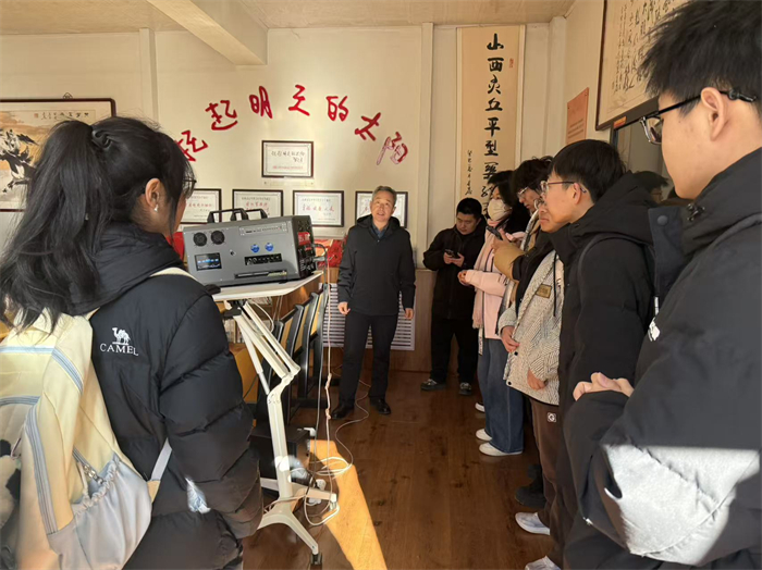调研团队走进平型关红军小学,在赵国普的带领下开启了一段浸润红色基因的探访之旅。校园内,习近平总书记题写的“托起明天的太阳”题词熠熠生辉,不仅彰显着国家对乡村教育的重视,更成为激励全校师生奋进的精神旗帜。同学们重点参观了红色影片放映室,当得知室内的放映机是习近平总书记的母亲齐心奶奶捐赠时,大家纷纷驻足凝视,深切体会到老革命家对乡村教育事业的深情牵挂与大力支持。